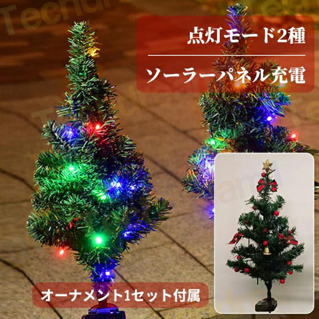 ソーラーライト オーナメント付き! クリスマスツリー LED 電飾 イルミネーションツリー ガーデンライト スリム 小さめ ソーラー充電 センサー 自動点灯消灯