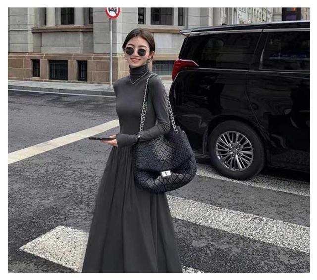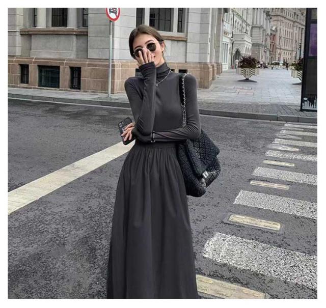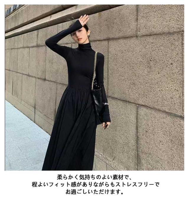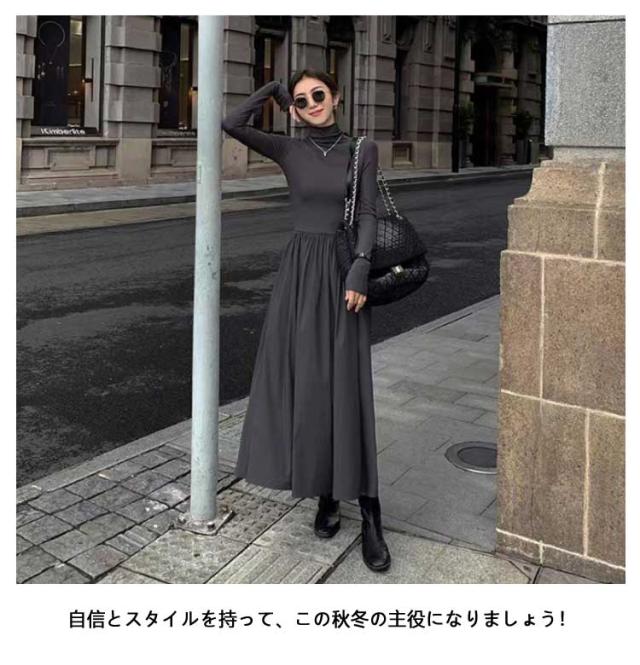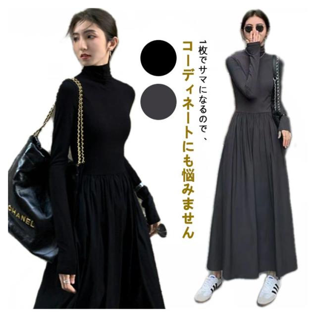 マキシ丈ワンピ ワンピース ロング丈 タートルネック レディース ハイウエスト ロングワンピース 秋 長袖 オフィス ウエスト切替え ハイネック 春 Aライン 冬 体型カバー 着痩せ おしゃれ シンプル きれいめ オフィスカジュアル フェミニン 上品 おしゃれ フレア