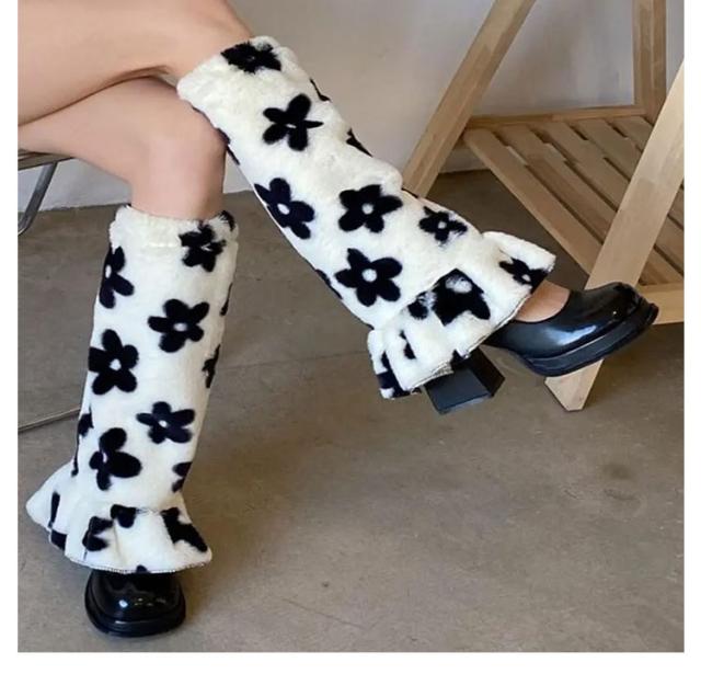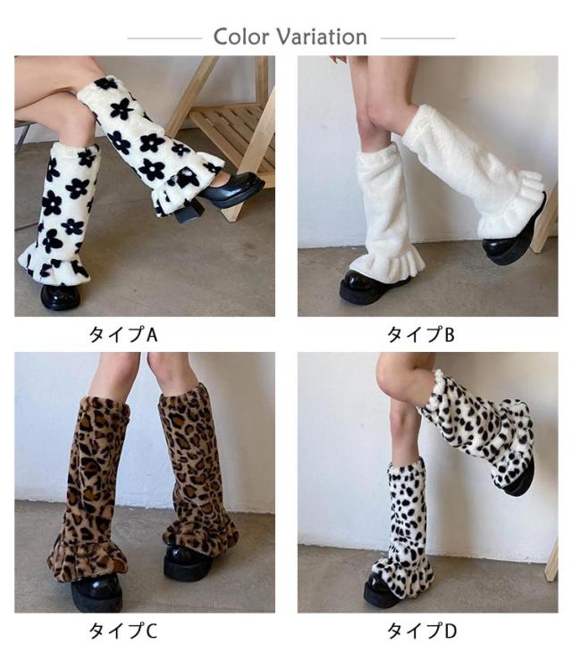Y2K レッグウォーマー レッグウォーマー ルーズソックス 50cm 靴下 起毛素材 エコファー ゴム フェイクファー レオパード ゼブラ ファッション小物 ダンス衣装 可愛い ダンス 衣装 ヒップホップ コスチューム 韓国 個性的 原宿系 JK 送料無料