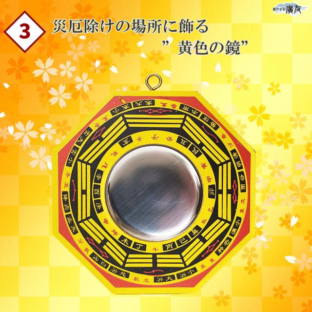 ・『災厄除けの場所に飾るー“黄色の鏡”』−邪気や殺気を跳ね返しながら金運色の黄色で金運アップ。