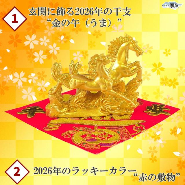 ・『玄関に飾る2026年の干支“金の午”』−新年にその年の干支の置物を玄関に飾ると「福を招くという縁起がある」といわれています。