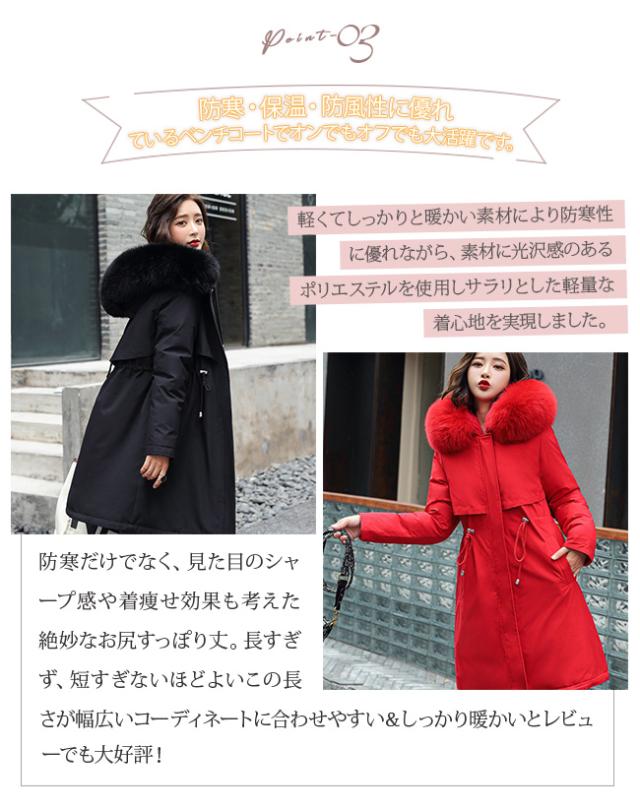 春新作 防寒コート レディース アウター ベンチコート 防寒着 ロング丈 防寒ジャケット 裏起毛 ボアジャケット ファーコート アウターコート フード付き 冬服 大きいサイズ 防風 暖かい 通勤通学