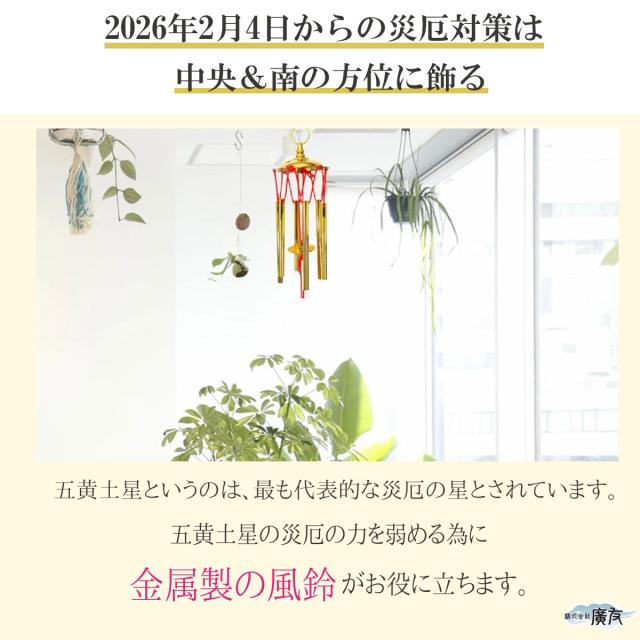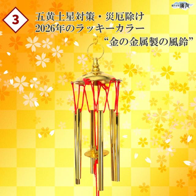 ・『五黄土星対策・災厄除け、2026年のラッキーカラー“金の金属製の風鈴”』−ひょうたんは、古来よりとても縁起の良いものとされ、お守りとして用いられてきました。災厄の根源となる五黄土殺を吸い込んで丸く収める銅製のひょうたん。