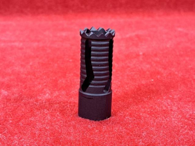 このハイダーはスミス&ウェッソン社に純正パーツを供給する等、実銃カスタムパーツメーカーとして著名なTROY Industriesの5.56mm口径メディバルフラッシュサプレッサーをトイガン用に再現したもの。