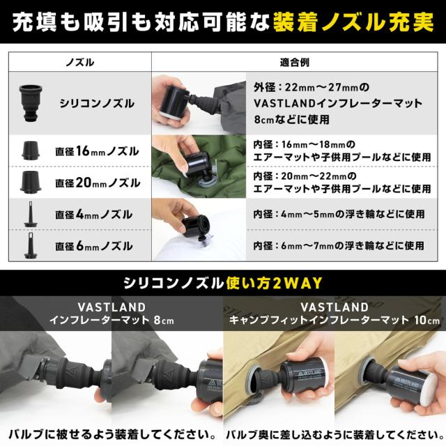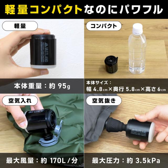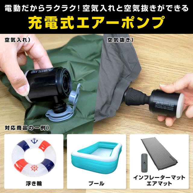 VASTLAND 充電式 エアーポンプ 空気入れ 空気抜き 電動 小型 インフレーターマット 浮き輪