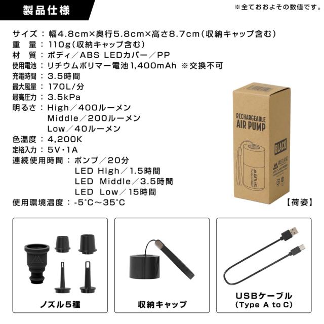 電動で簡単に空気入れと空気抜きができる「充電式 エアーポンプ」です。