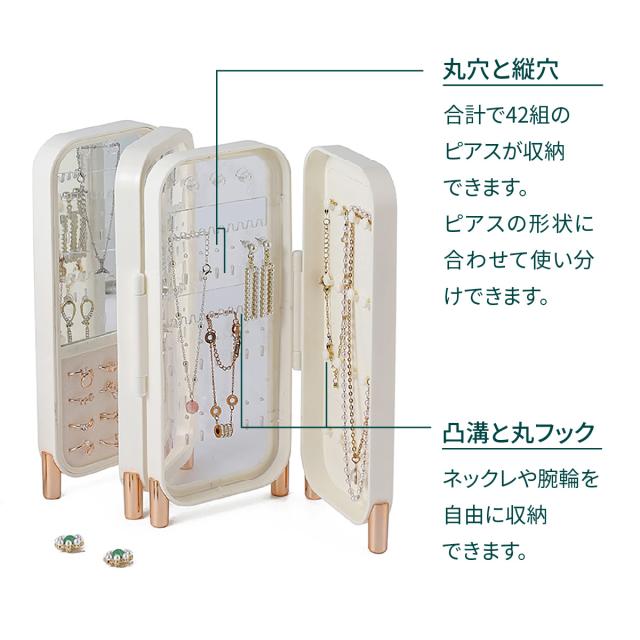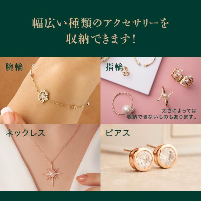 ピアス・ネックレス・指輪・ブレスレット等、幅広い種類のアクセサリーを収納できます。