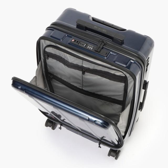・中面には収納アイテムの視認性に優れるメッシュポケットのほか、滞在先のホテルウォールポケットとして使用できる仕切り板を搭載。