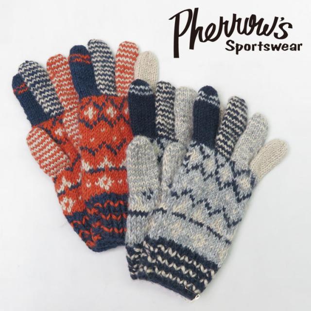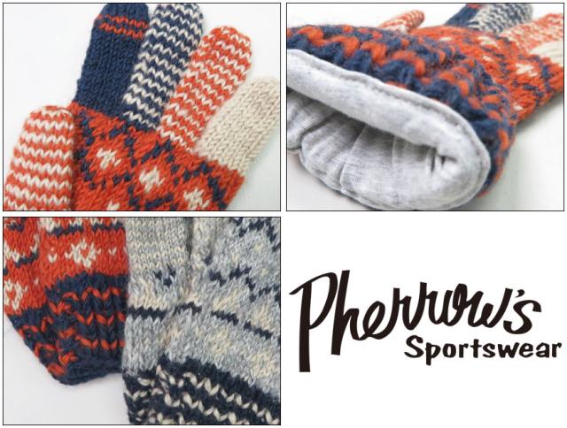 フェローズ Pherrow's 手編み ウール コットン グローブ 手袋 ハンドメイド 23W-PNG1