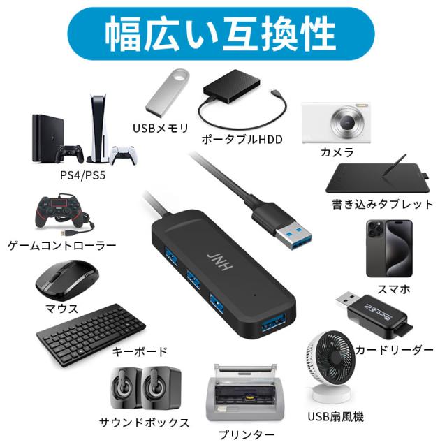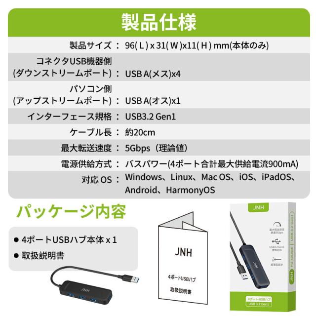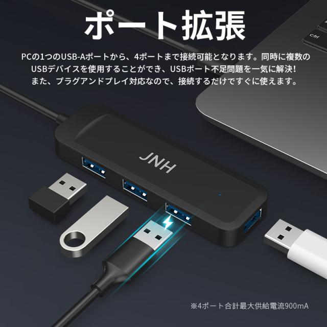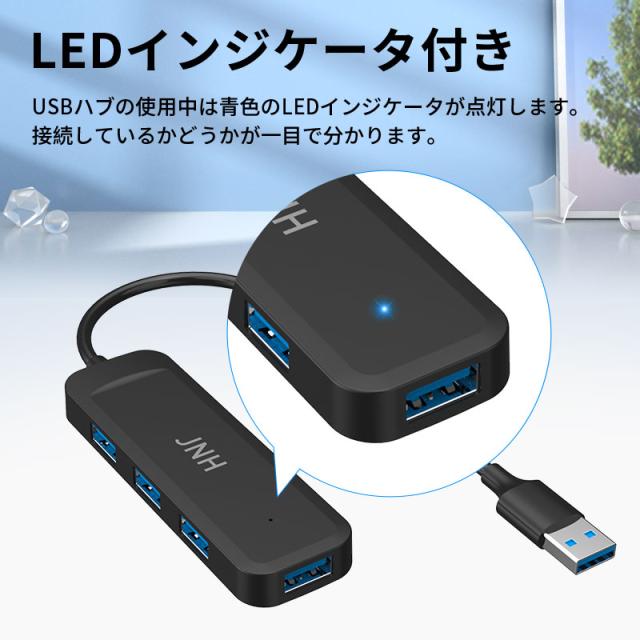 JNH 5Gbps高速転送 USBハブ USB3.2 Gen1 4ポート USB-A拡張 Windows/MacBook OS/Linux バスパワー USB HUB ゲーム用 1年保証 ネコポス送料無料 ポイント消化