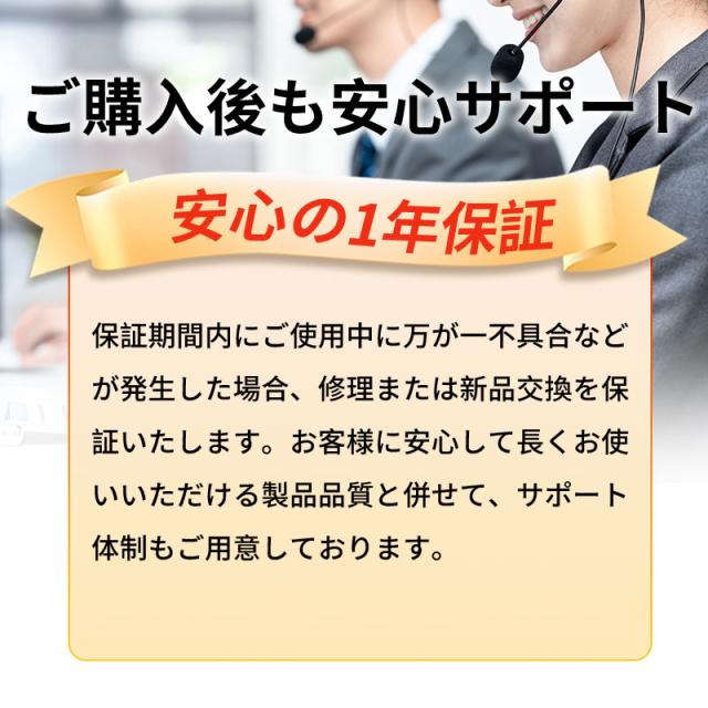 保証期間内にご使用中に万が一不具合などが発生した場合、修理または新品交換を保証いたします。お客様に安心して長くお使いいただける製品品質と併せて、サポート体制もご用意しております。