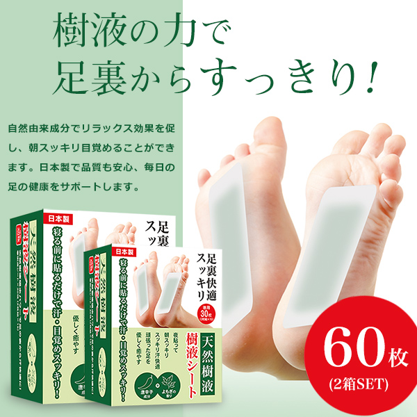 天然樹液 足裏シート 60枚入り 個包装 朝スッキリ 足裏に貼るだけ 余分な水分を吸収 むくみ対策 ホルモンバランスを整える 毛細血管の血行を改善