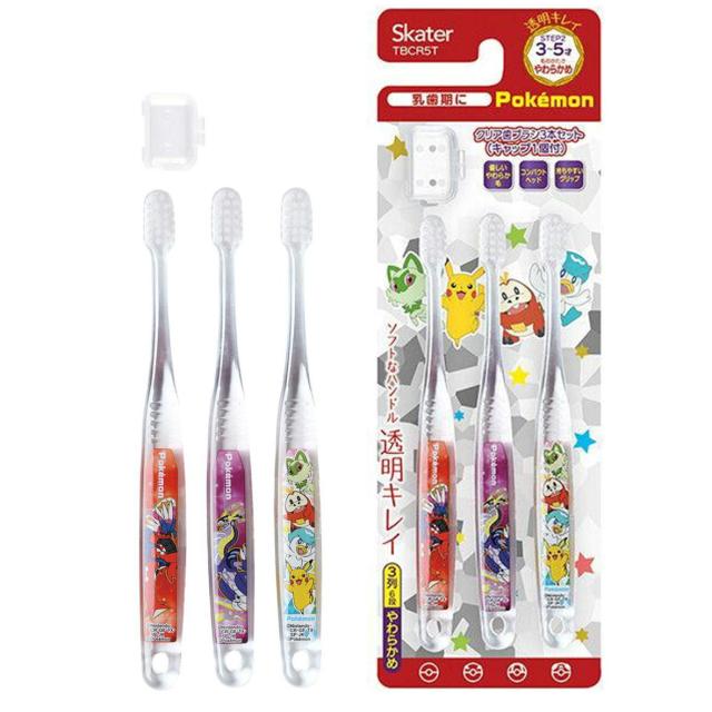 キャラクター歯ブラシ 3本セット ポケットモンスター【4973307646386 250】スケーター クリア 歯ブラシ やわらかめ 3本セット キャラクター歯ブラシ 3-5才用 TBCR5T ポケモン歯ブラシ