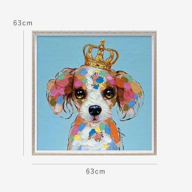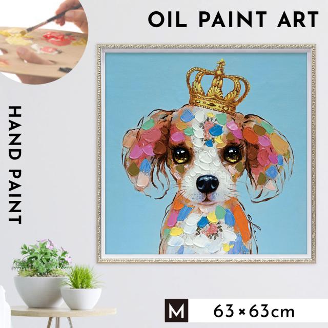 アートパネル 犬 アートフレーム 油絵 アート 絵 インテリア 動物 オイルペイント 北欧 オイルペイントアート キングカラフル 63×63cm