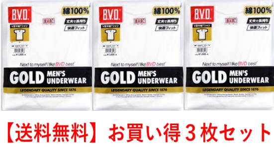 G013a-3 ゴールドメンズ 3枚組・BVDアンダーウエアー 丸首首半袖 フライス編み(3枚セット)送料無料