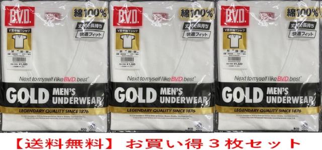 G044a-3 ゴールドメンズ 3枚組・BVDアンダーウエアー V首半袖(3枚セット)送料無料