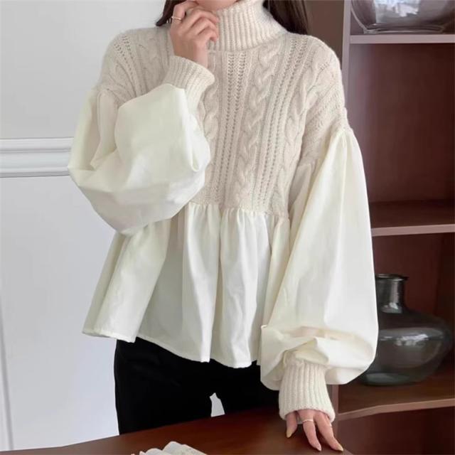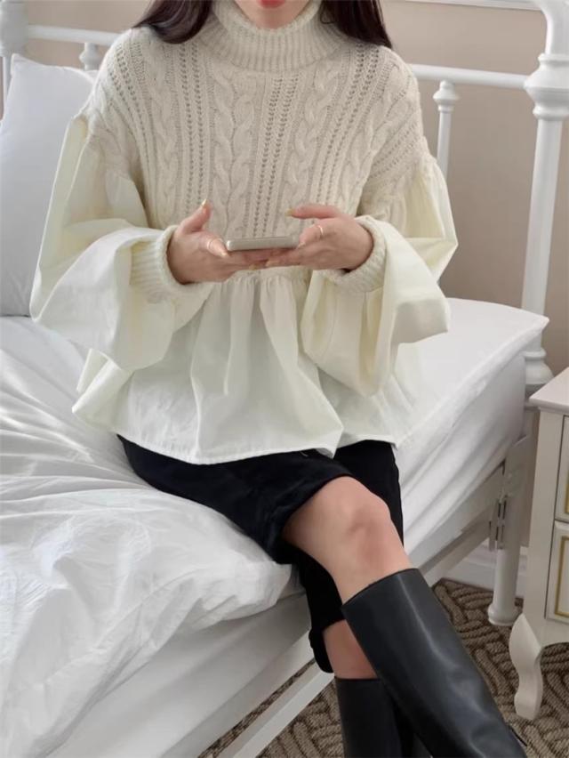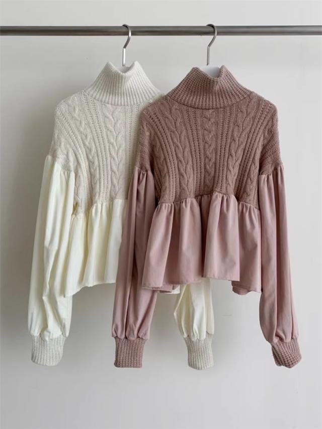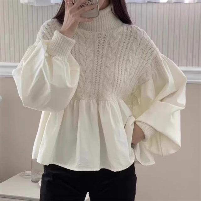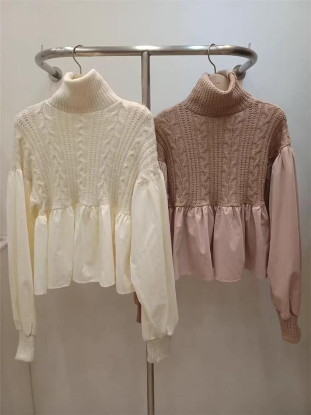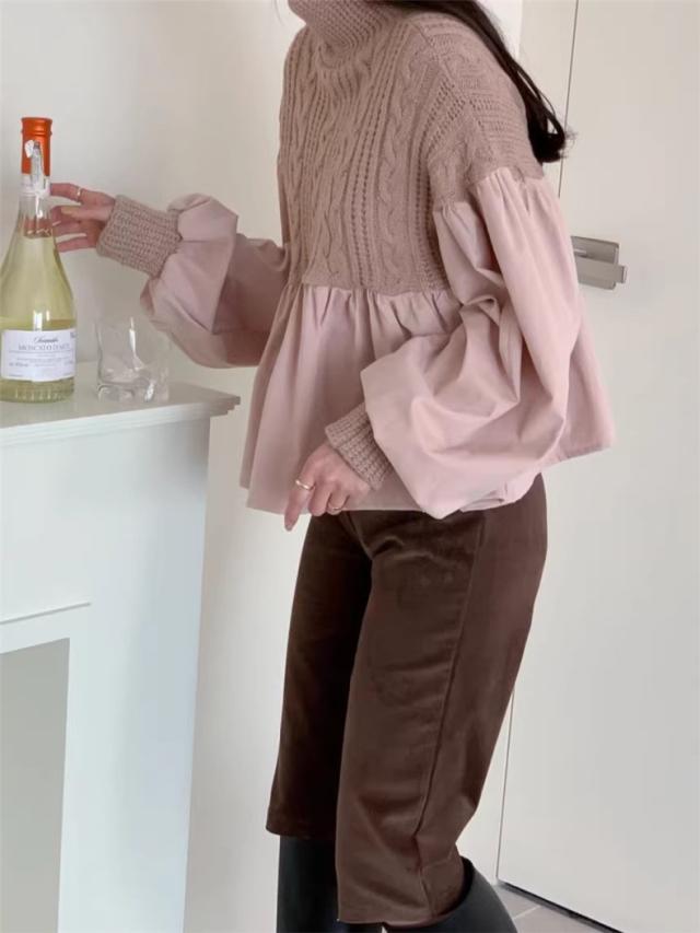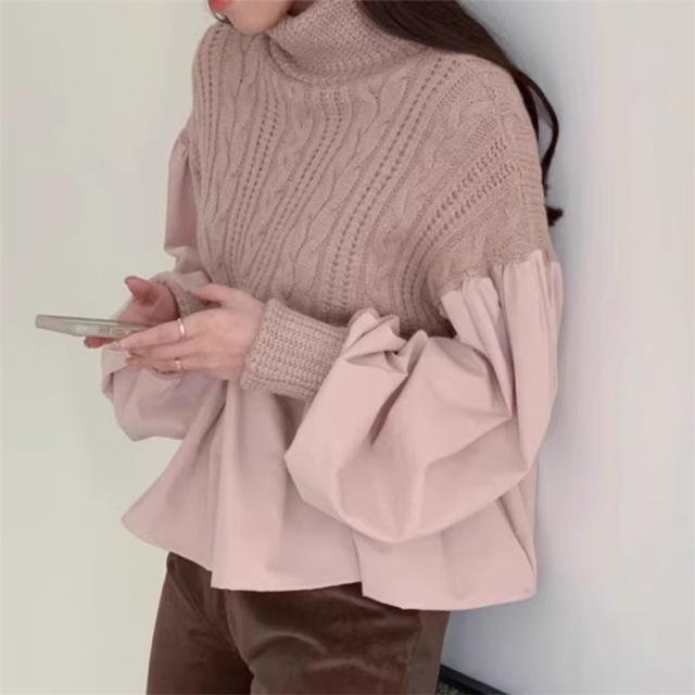 ニット レディース 秋冬 トップス セーター 異素材 切り替え 長袖 クルーネック 体型カバー きれいめスタイルからカジュアルにも幅広いシーン◎ 大人気