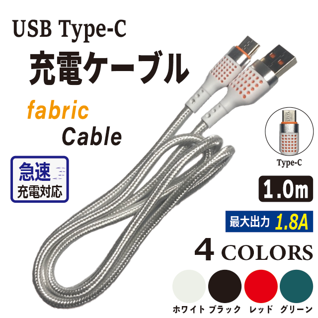 【 3本購入で+1本プレゼント! 】 Type-C 急速 充電 ファブリック ケーブル 1m 1.8A android スマホ 【 商品レビュー記入で ポイント 10% 還元 】