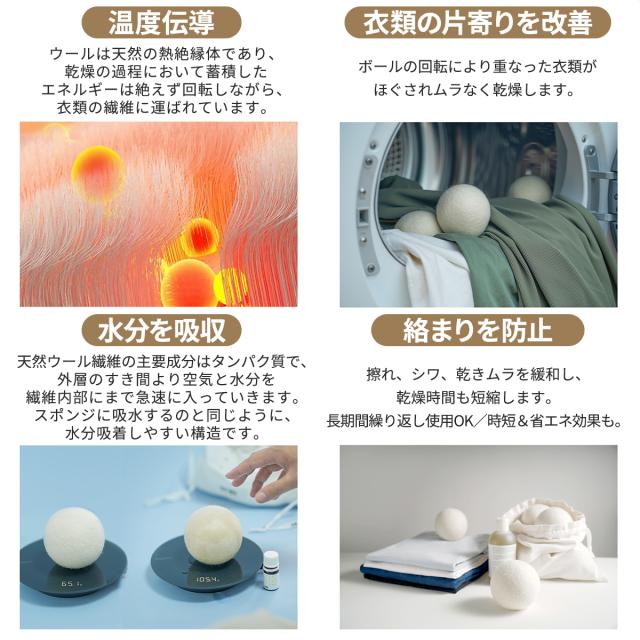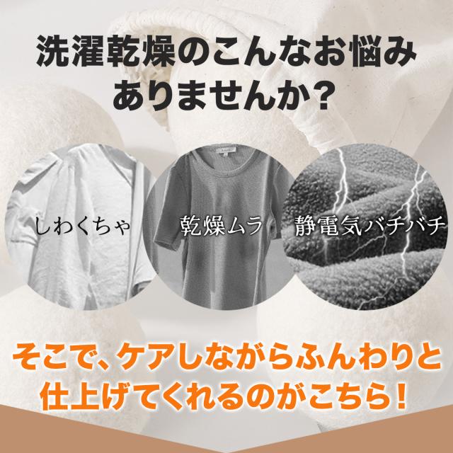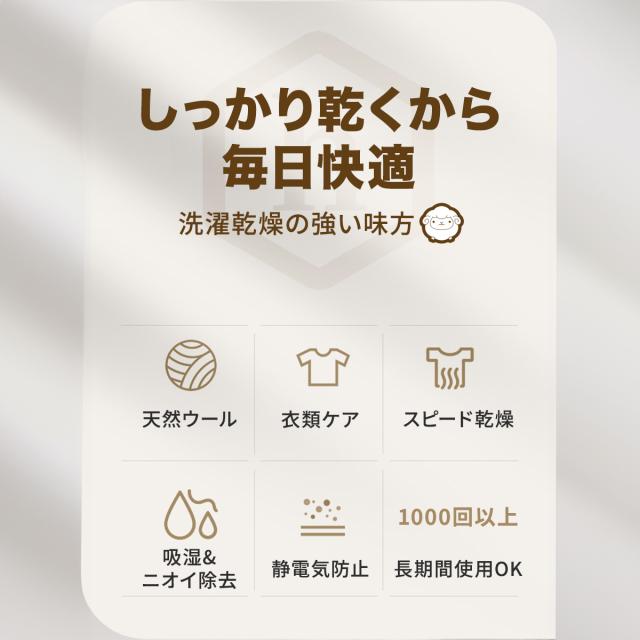 ●乾燥スピードアップ/絡まり防止/静電気解消/あらゆる衣類やシーツ/カバーの乾燥に対応 しっかり乾くから毎日快適 乾燥機の強い味方 天然ウール/衣類ケア/スピード乾燥/吸湿&ニオイ除去/静電気防止/長期間使用OK |