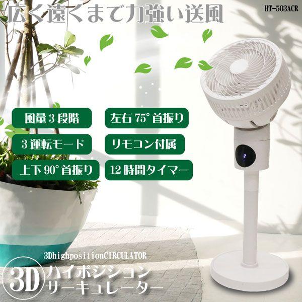 HIRO 3Dハイポジション サーキュレーター 最大風速時約20畳 リモコン付属 4つの送風スタイル 1年中通して使える! HT-503ACR