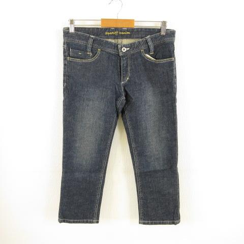【中古】スポーティフ sportiff デニムパンツ ジーンズ クロップド ストレッチ 紺 インディゴ M *T237 レディース