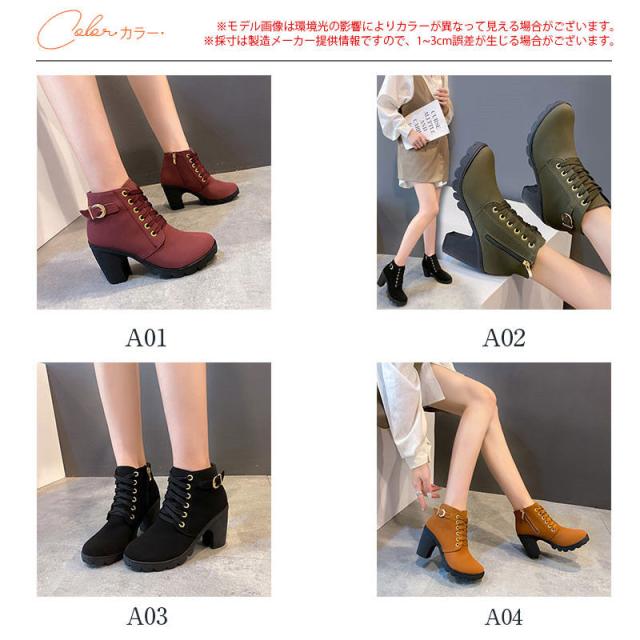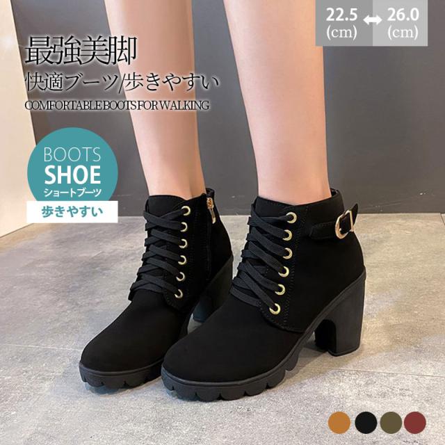 【水曜日まで!10%クーポン配布中】 ショートブーツ レディース ブーティー ブーツ 編み上げブーツ ハイヒール 靴 美脚 脚長 カジュアル 太ヒール 美脚 疲れない