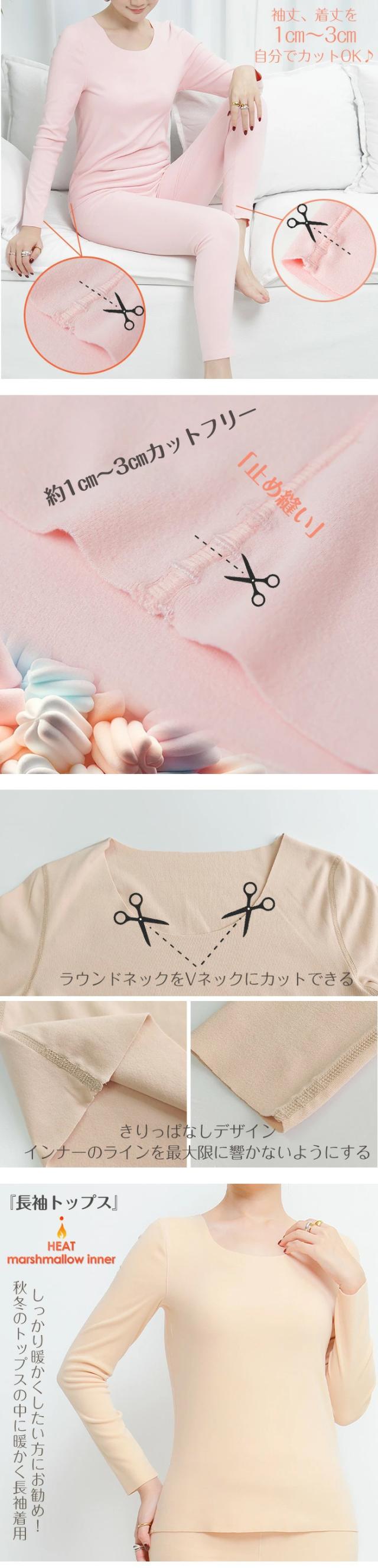 - ヒートマシュマロインナー、初めての質感です。裏起毛とはまた違った暖かさと着心地があります。 首元や袖口を切って短くすることもできるので、とても良いです!まだ朝晩は肌寒いので、枚数増やそうかと検討中です...