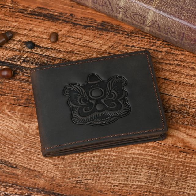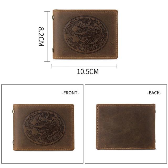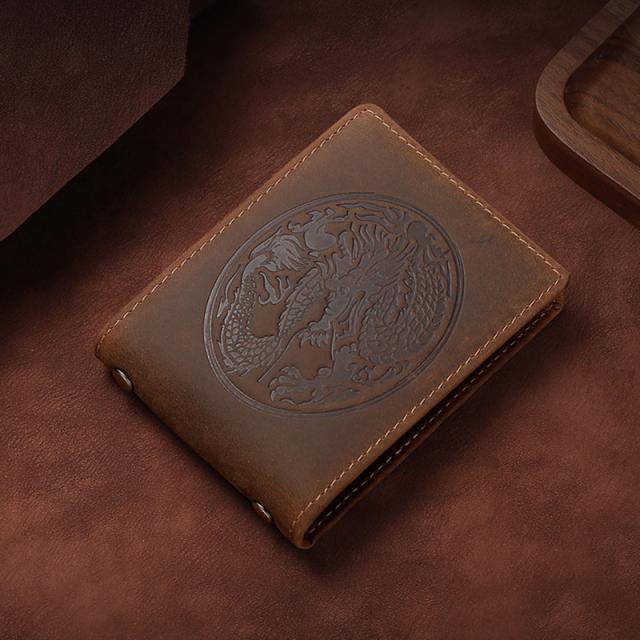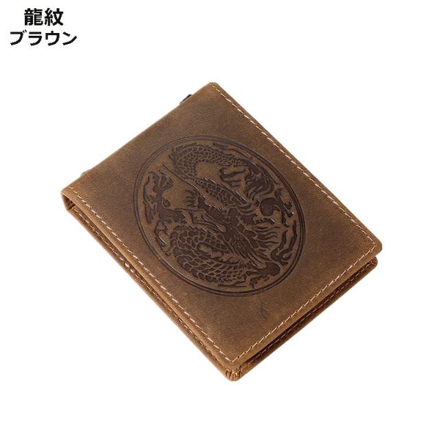 折りたたみ式カードケース、古典的な龍紋型押し、本革ならではの上品さと、センスの良さをさりげなくアピールできます。