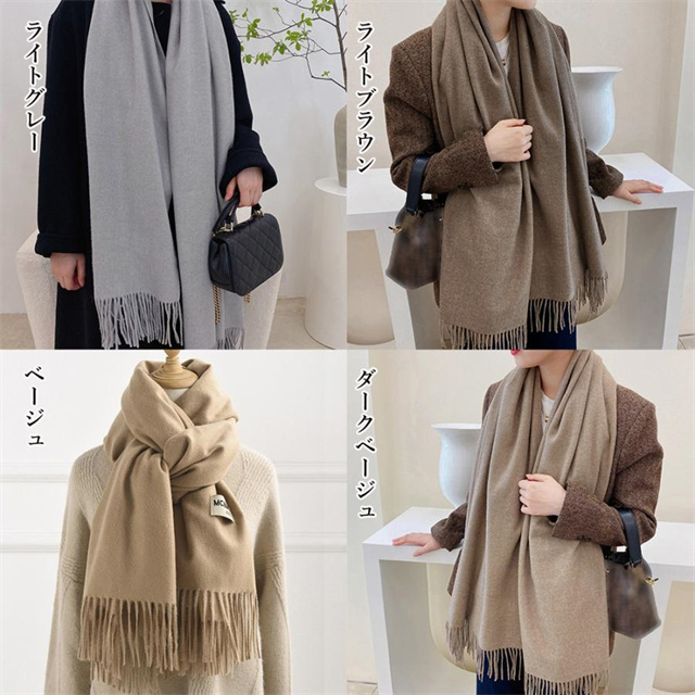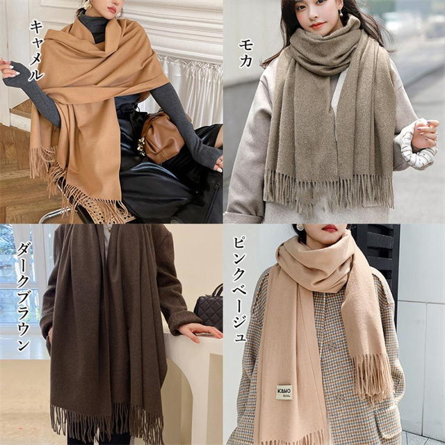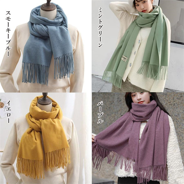 レディース ふんわり フリンジストール リバーシブル 秋冬 ロング スカーフショール かわいい マフラー 無地厚手 韓国