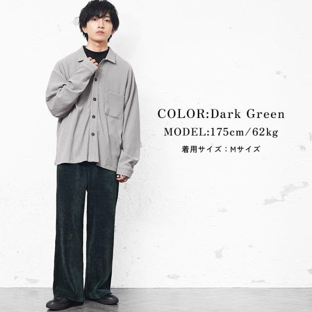 柔らかな生地感と間隔の細いコーデュロイの畝が作り出す上品な揺れ感とツヤ感が特徴的なワイドパンツ。繊細で深みのある光沢が高級感を演出します。また脚の形を拾わないワイドストレートのシルエットと目線を縦に誘導する流れるような落ち感で体型カバーと脚長効果が手に入ります。