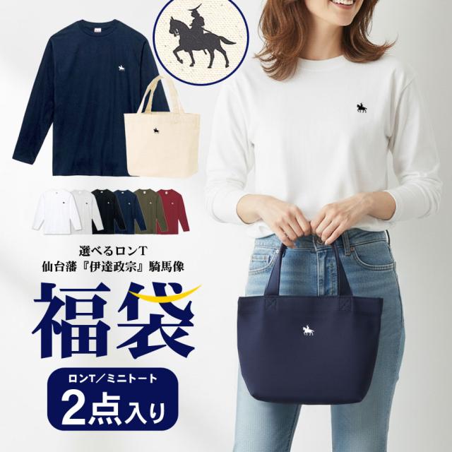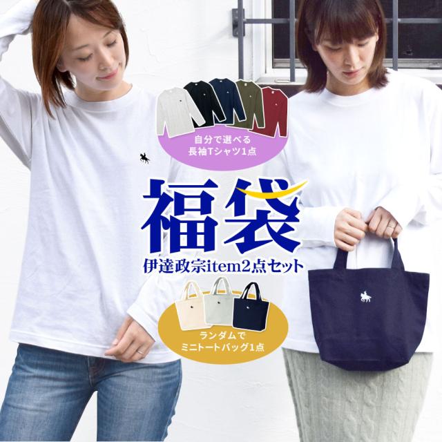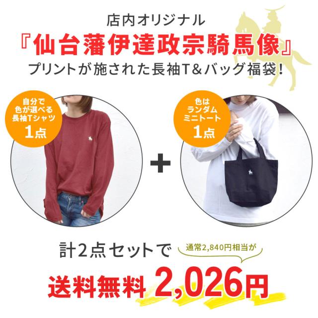 [クーポン利用不可] 福袋 2026 政宗 2点セット ロンT トートバッグ 選べる 長袖 カットソー Tシャツ バッグ 仙台藩 伊達政宗 騎馬像 プリント レディース メンズ キャンバストート ハッピーバッグ HAPPY BAG 送料無料 (fuku0017)