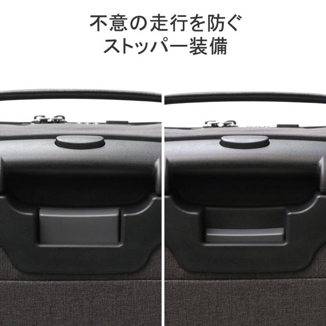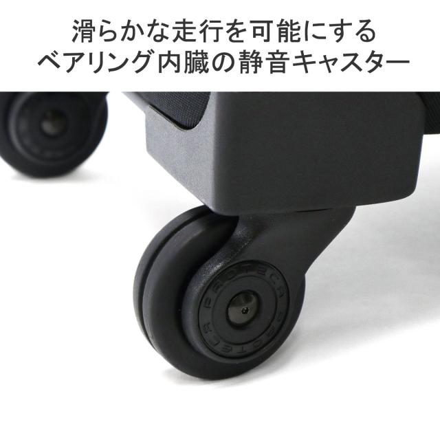 素材感のコンビネーションが特徴的で、カジュアルな印象のトロリーシリーズ『ACTOY 2/アクトーイ 2』。こちらは、95Lモデルです。手元のスイッチで簡単に操作できるマジックストップや、体感音量を大幅に削減したサイレントキャスターを採用するなど、プロテカならではの機能性を集約した、高い機能性が魅力になっています。