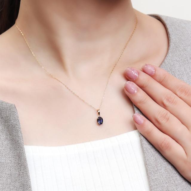 K18 Lucianna 天然 アイオライト オーバル ゴールド ネックレス ペンダント 18金 K18ゴールド 18k 金 天然石 誕生石 3月 青 楕円 シンプル さりげない