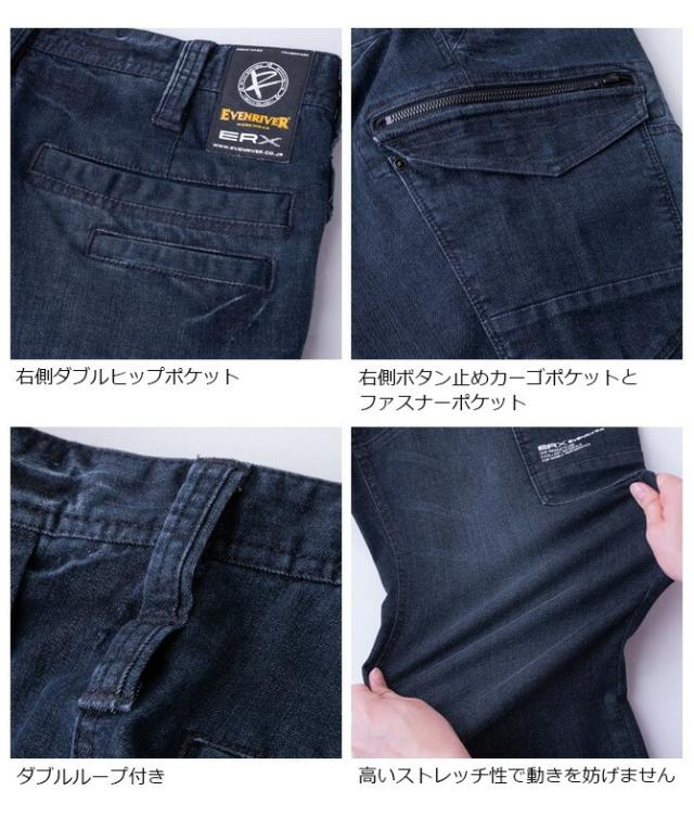 エクストリーム ストレッチ マックス デニム カーゴ パンツ EVENRIVER イーブンリバー USD1502 ストレッチ メンズ オールシーズン 春夏 秋冬 ワークパンツ 作業服 作業着