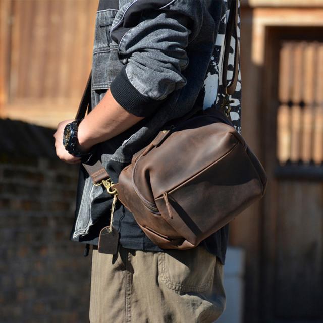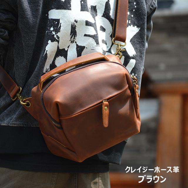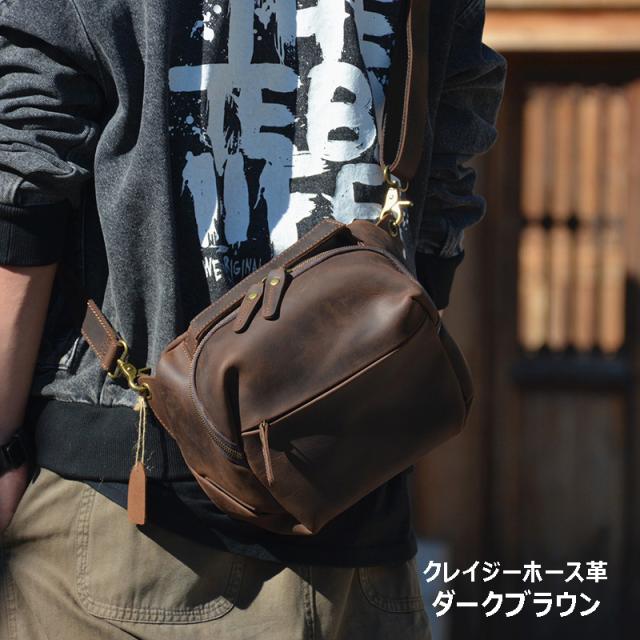 本革 ハンドメイド メンズ ボディバッグ クロスバッグ 牛革 革バッグ クレイジーホースレザー ビンテージスタイル プレゼント bgs21