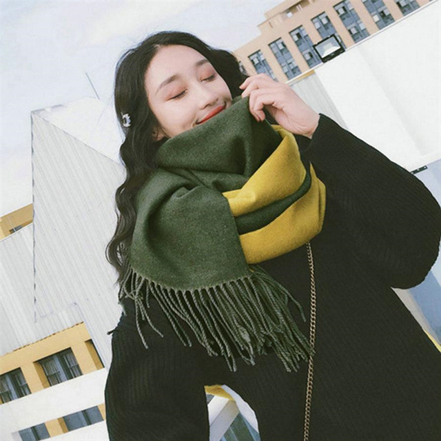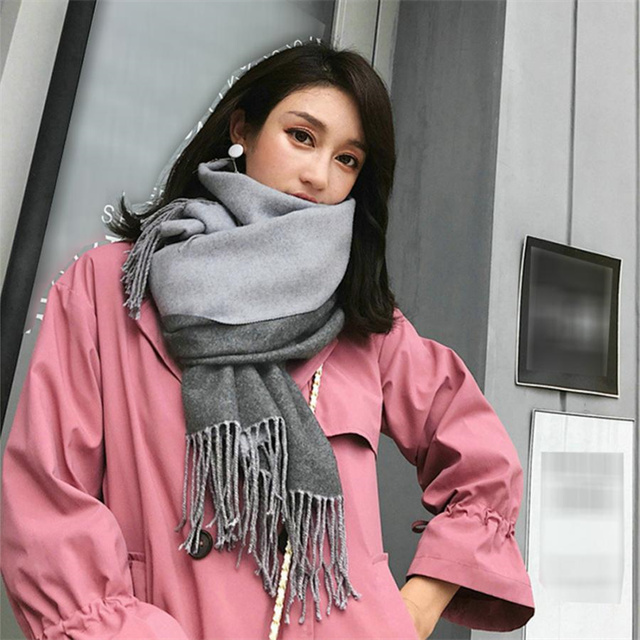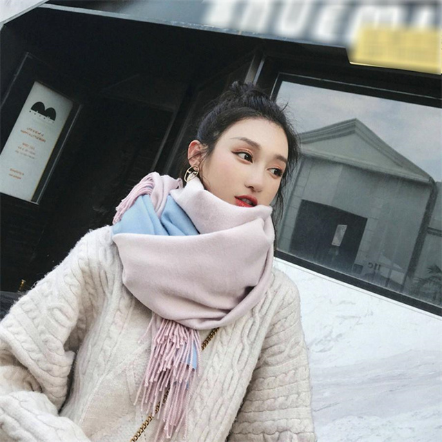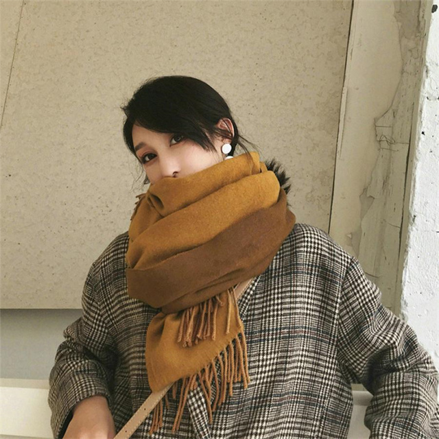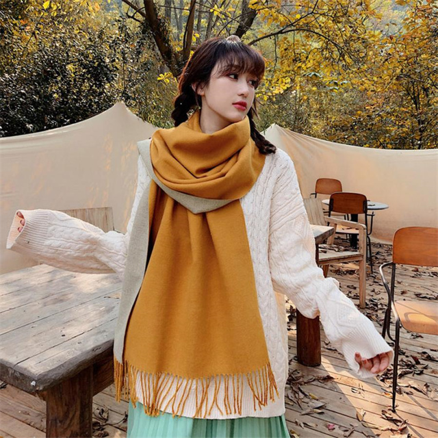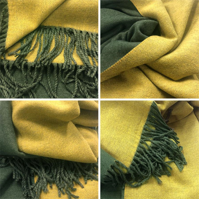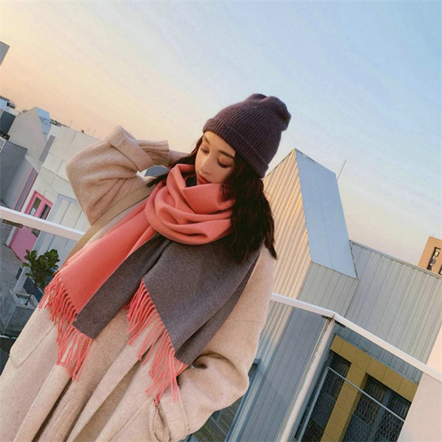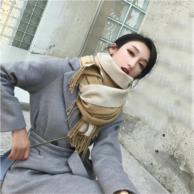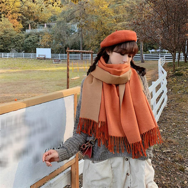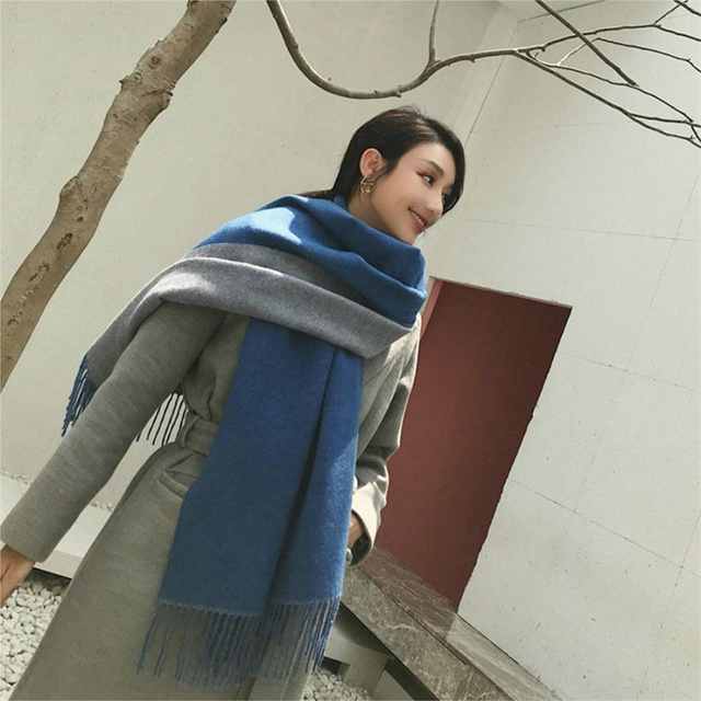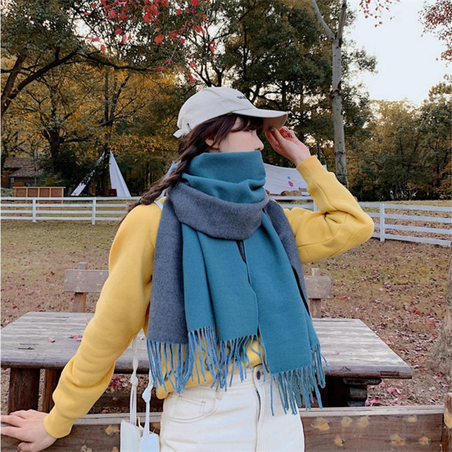 シンプルでスタイリッシュなフリンジ付きデザイン。1枚でオシャレの幅が広がる大判配色ストール ツートンカラーのリバーシブル仕様なので、巻き方次第で雰囲気が変わり、コーディネートの幅も広がります、その日の気分でアレンジ自在