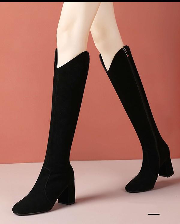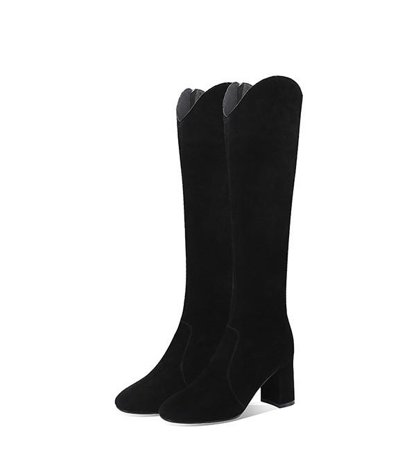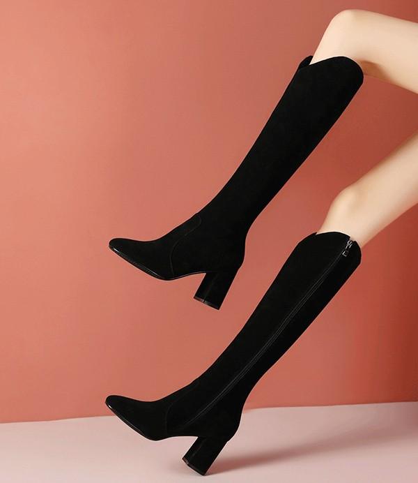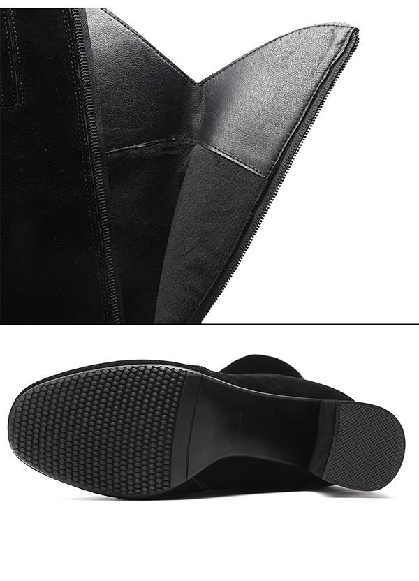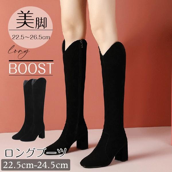 美脚ロングブーツ チャンキーヒール シンプル 疲れない ニーハイブーツ フィット 秋 冬 太ヒール 美脚 疲れにくい 可愛い フェミニン ガーリー きれいめ 通勤 サイドジップ 黒cs091s1s1zr