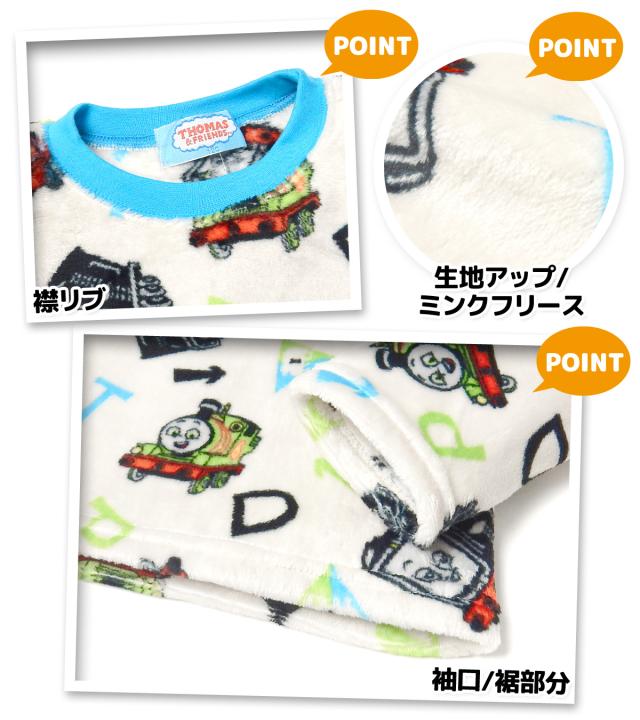 【送料無料】男児 キッズ ミンクフリース素材 長袖 パジャマ トーマス 上下組 ふわふわ あったか 保温性 td-0719【メール便対応】