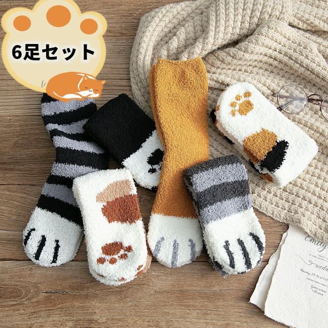 6足セット 靴下 猫足 もこもこ靴下 レディース 猫の爪 厚手 肉球 防寒 靴下 もこもこソックス 裏起毛 ふわふわ 室内用 あったかい 暖かい 可愛い 女性 冬 冷え対策 ソックス 普段着 ルームソックス カジュアル ギフト