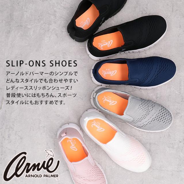 アーノルドパーマー スリッポン レディース メッシュスニーカー 黒 軽量 おしゃれ シューズ 通学 通勤 運動 靴 AN0902