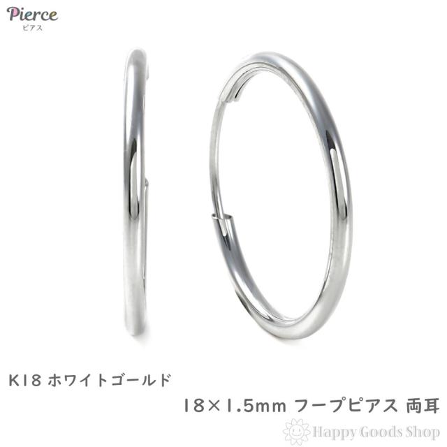 18金 フープピアス 18×1.5mm 両耳 ホワイトゴールド リング ピアス レディース メンズ