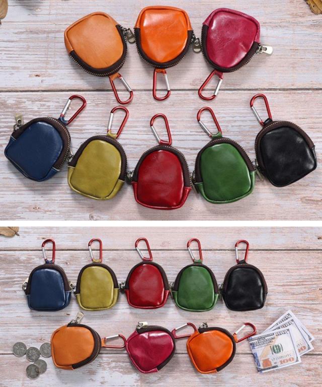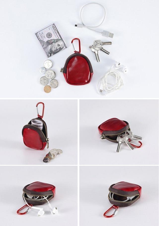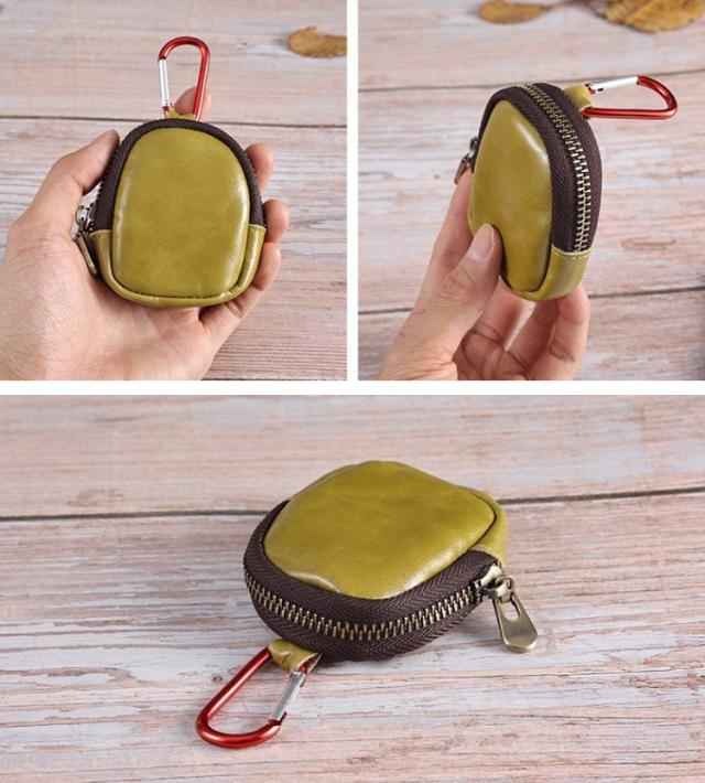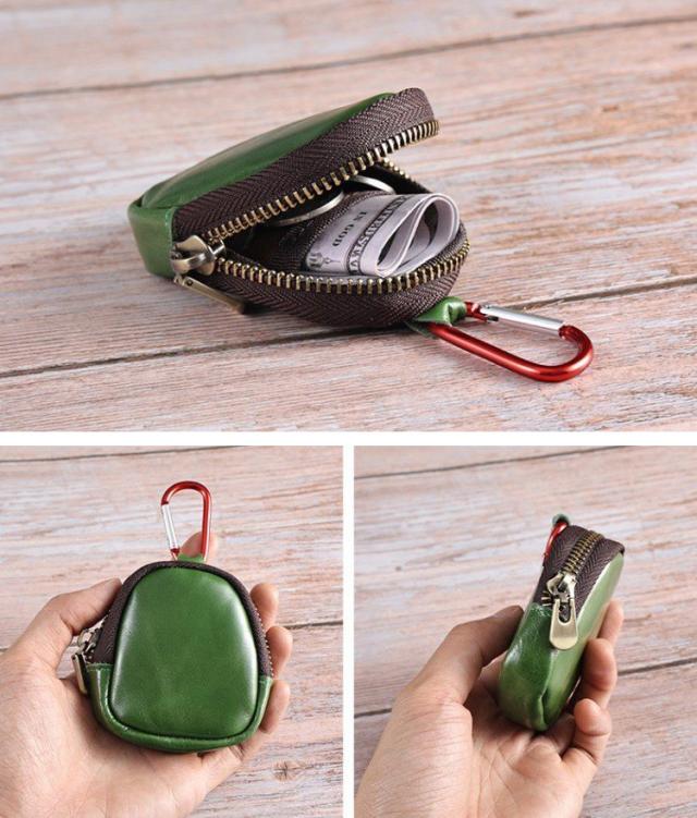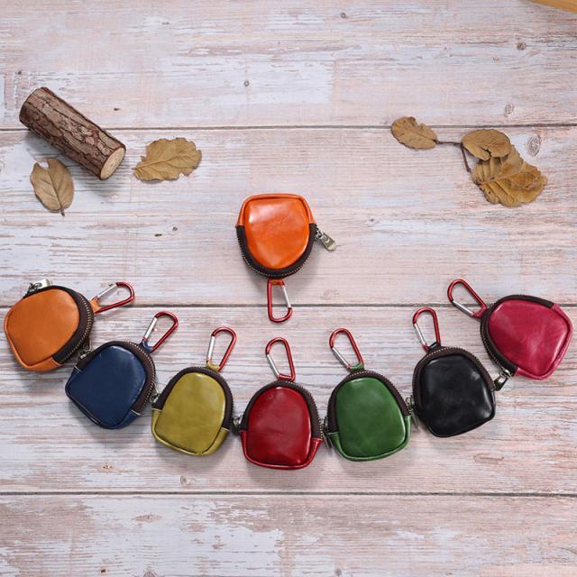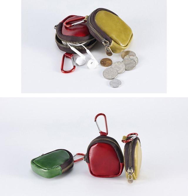 本革 小銭入れ コインケース イヤホンポケット 小物入れ 牛革 カラビナ付き 革アクセサリ 8色 bgs40
