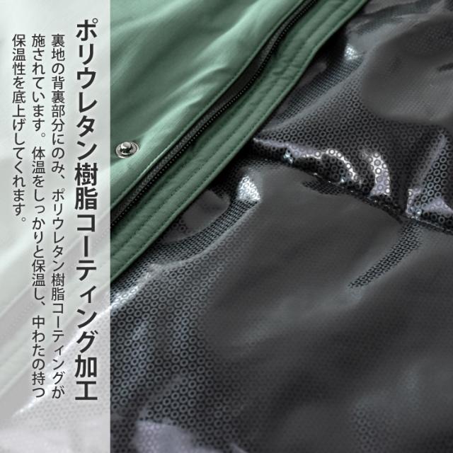 FIRST DOWN EX中わたフェイクダウンジャケットが新登場!超防寒機能で冬のアウトドア活動を快適にする一着です。裏地の背裏部分にはポリウレタン樹脂コーティング加工が施されており、体温をしっかりと保温し、冷気の侵入を防ぎます。さらに、防風・耐水・撥水機能を備えているため、雨や雪の日でも高い防護性を発揮し、あらゆる天候下での使用に対応。加えて、ストレッチ素材を使用しているため、動きやすく快適な着心地も実現しています。
