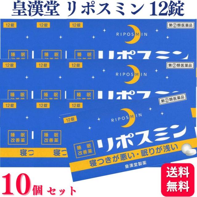 【指定第2類医薬品】【10個セット】 皇漢堂 リポスミン 12錠 不眠 不眠症 寝つきが悪い 眠りが浅い 眠れない 改善 緩和 眠気