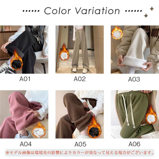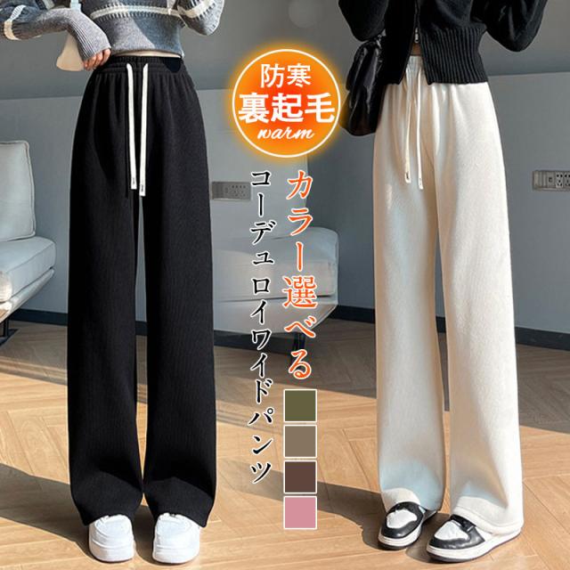 ワイドパンツ ロング丈 コーデュロイ あったかい お出かけ 裏起毛パンツ 裏ボア 体型カバー 可愛い 無地 楽ちん 秋冬 暖かい