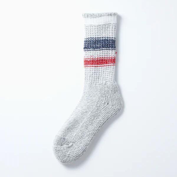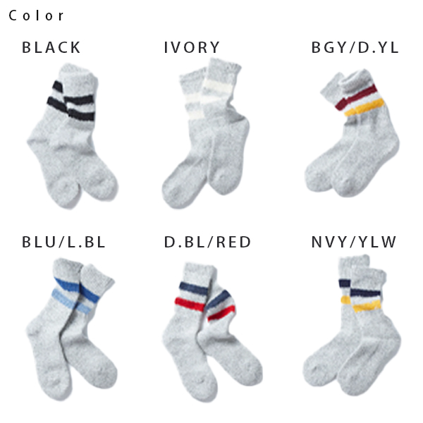 1980〜90年代前半にかけてスキー用ソックスを編み立てていた特殊な編み機で作ったソックスです。 スキーブーツの進化にともなってソックスが薄手になったことで、 この編み機でのスキーソックスの生産量も減少。 現在この編み機では、漁師さんや林業関係など、 寒冷地で働く方が履くワークソックスを生産しています。 実際にそれらのワークソックスで使用している、 太番手のウールとアクリルの混紡糸をベースに使用し、 足底をパイル編みに仕上げたこのソックスは、ブーツソックスとして普段履きはもちろん、 フィッシングやキャンプなどアウトドアシーンでも使用できる一足です。 ※乾燥機の使用は縮みの原因となりますのでお避けください。 | ||||