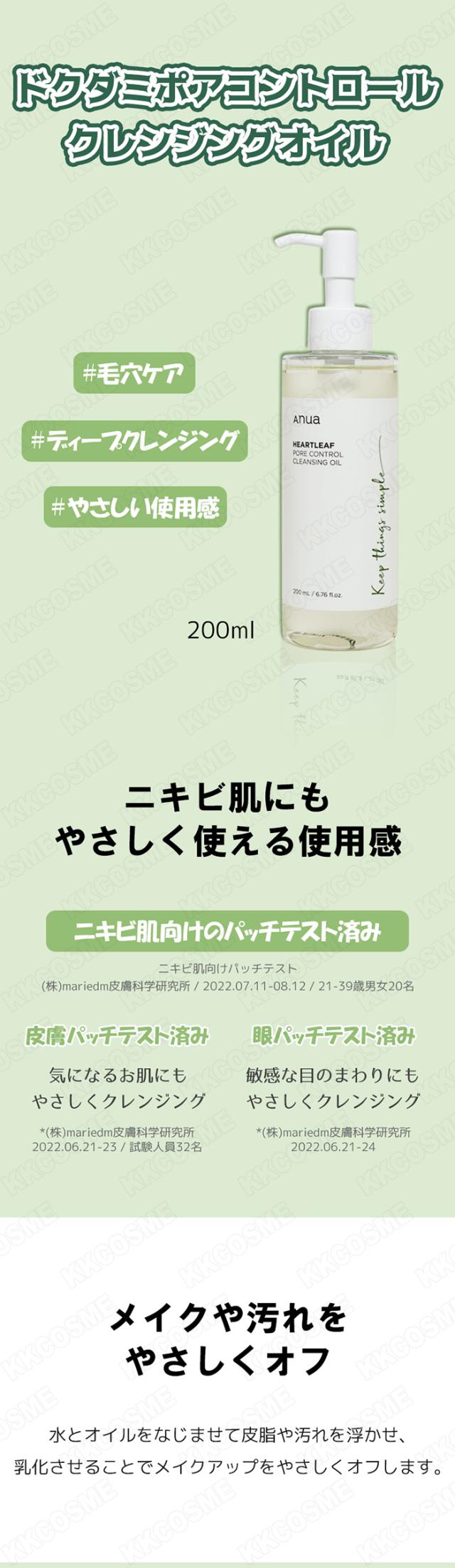 anua アヌア ドクダミポアコントロールクレンジングオイル 200ml 黒ずみケア メイク落としオイル 単品 韓国コスメ 正規品