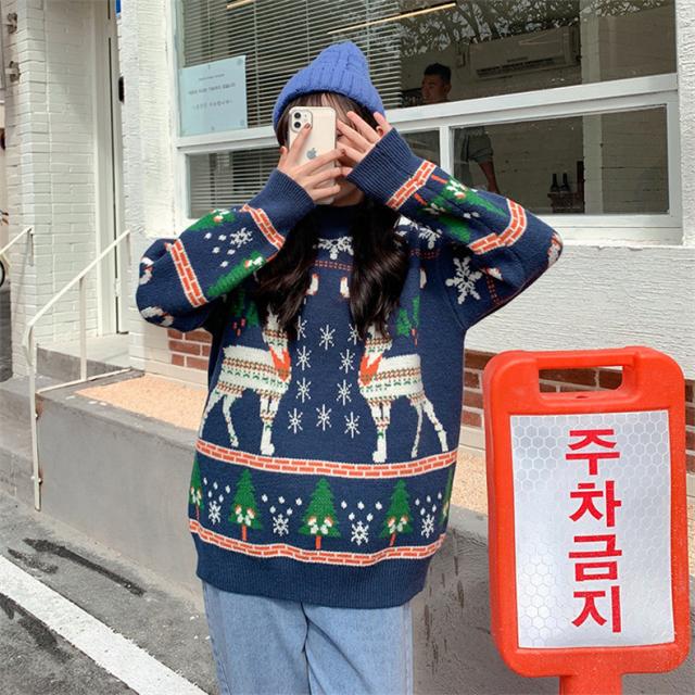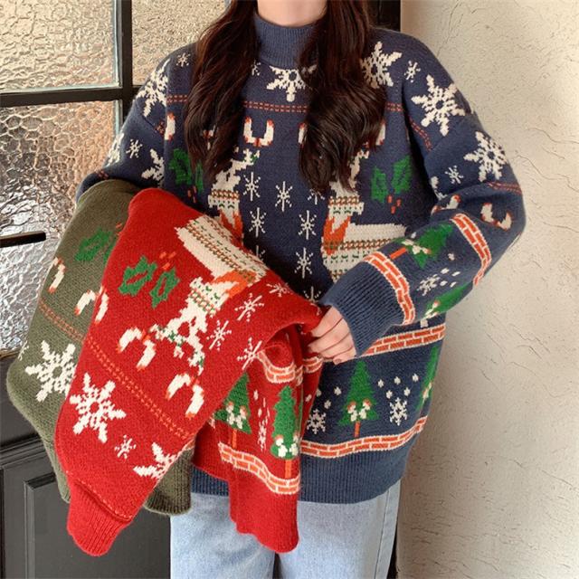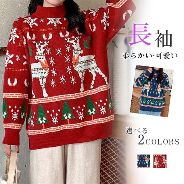 ボーイズ 女性 男性 ニット セーター クリスマス衣装 サンタクロース柄 クルーネック 丸首 セーター親友 防寒 家用 彼と彼女 プレセント ギフトに