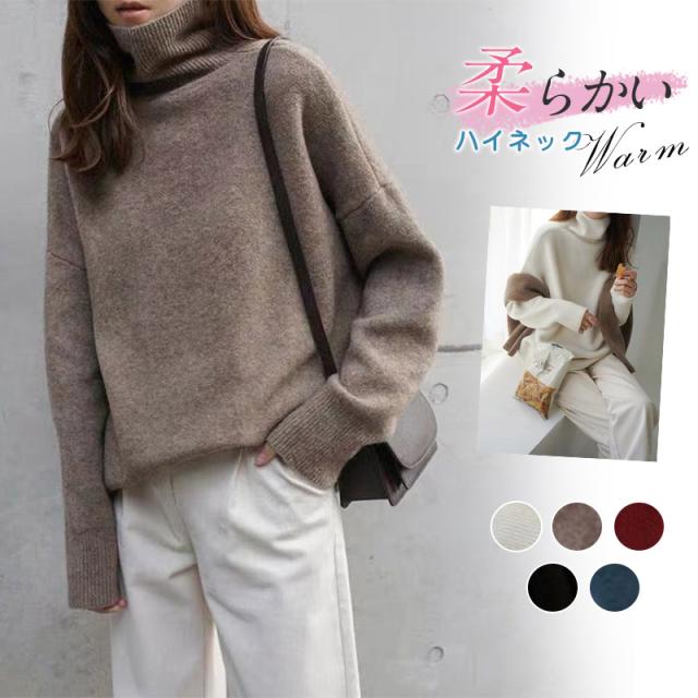 秋冬新作 ハイネック ニット セーター 長袖 無地 レディース トップス インナー 手洗い シンプル 通勤 きれいめ 重ね着 送料無料 柔らか
