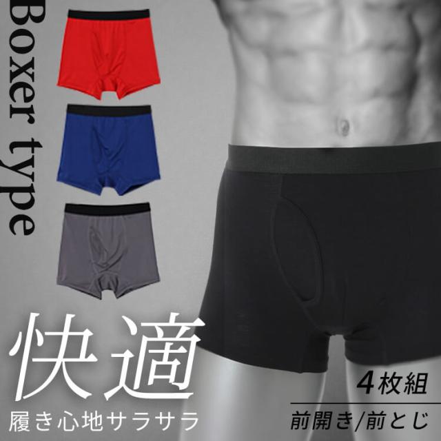 アンダーウェア メンズ インナー ボクサーパンツ 4枚組 (メール便) 全4サイズ×2種類×4色 メンズ インナー シンプル ギフト プレゼント 吸水速乾 ストレッチ 下着 S〜XLサイズ 送料無料